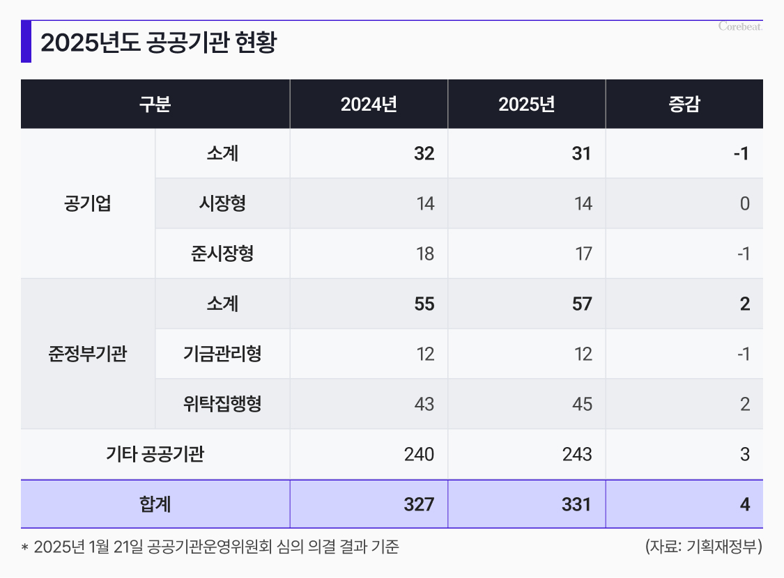 기획재정부에 따르면 올해 초 공공기관 지정 심의 결과 331개 기관이 확정됐는데, 8월 현재 334개로 늘었다. 이 가운데 수도권 소재 기관은 159곳(46%)이며, 서울에만 125곳이 몰려 있다. 여기에는 중구 청계천로 예금보험공사、영등포구 국회대로 코레일유통、강남구 삼성로 그랜드코리아레저 등이 포함돼 있다.