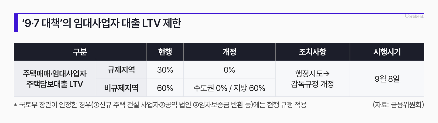 이를 위해 수도권 및 규제지역에서 주택을 담보로 하는 주택 매매·임대사업자에 대한 주택담보대출비율(LTV)을 기존 30~60%에서 ‘0%’로 낮추고, 8일부터 시행에 들어갔다. 다주택자가 사업자 대출을 활용해 갭투자에 나서는 행태를 막겠다는 취지이다.