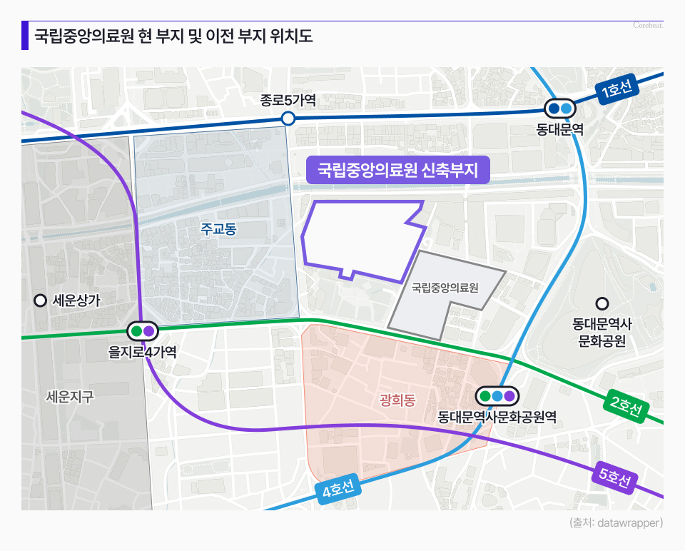 15일 관련 업계에 따르면 서울시는 지난 5월 의료원 현대화사업을 위한 도시관리계획 변경안을 결정·고시했다. 이에 따라 보건복지부는 병원 위치를 중구 을지로 6가 18-79에서 인근 미공병단 부지(중구 방산동 19번지 일대)로 이전하기로 했다.