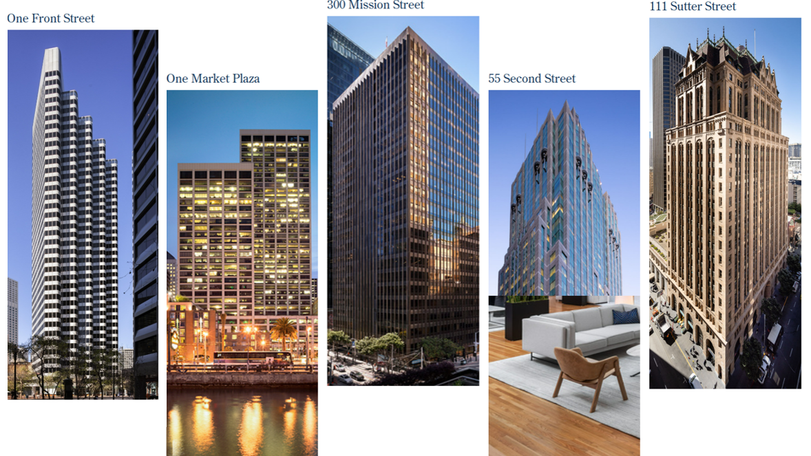 현재 파라마운트 포트폴리오는 자체 보유 13개 자산과 위탁관리 4개 자산으로 총 1310만 평방피트(약 397만 평) 규모이며, 6월 30일 기준 임대율은 85.4%다. 샌프란시스코에서는 원 마켓 플라자(One Market Plaza), 원 프론트 스트리트(One Front St.), 300 미션 스트리트(300 Mission St.) 등이 남아있다.