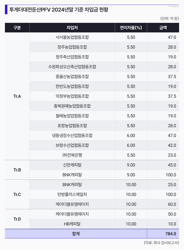 공매가 성사됨에 따라, 선순위 대주(농협/축협/전북은행)가 대출 원금 394억원을 회수하고 나면, BNK캐피탈과 신한캐피탈을 비롯한 나머지 대주는 원금 전액 손실이 발생할 것으로 예상된다.