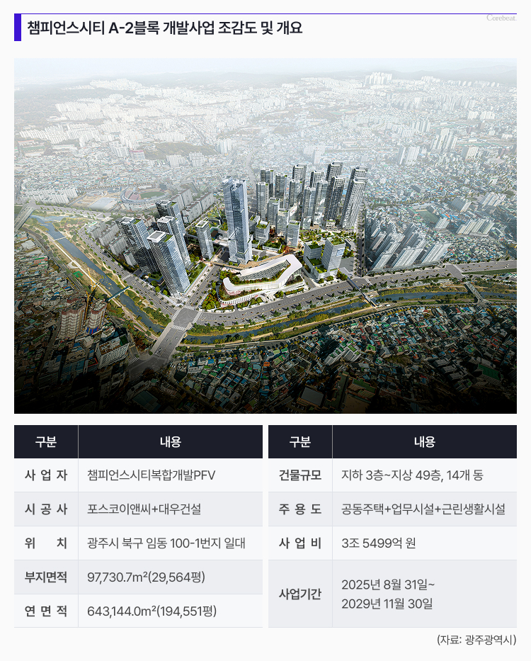 챔피언스시티복합개발PFV는 지난 4월28일 대우건설과 포스코이앤씨를 챔피언스시티 시공 우선협상대상자로 선정했다. 하지만 올해 잇따른 사망사고로 정부의 제재 압박을 받고 있던 포스코이앤씨가 시공권을 포기하면서 사업 진행 지연에 대한 우려가 제기되기도 했다.