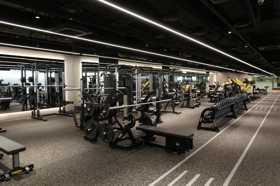 Also on B2, a dramatic new fitness center now stretches across space that once housed retail. The previous gym, tucked on the third floor, was far too small. Today, the facility can serve up to 160 users at once—a scale designed for a post-pandemic workforce that prizes wellness.