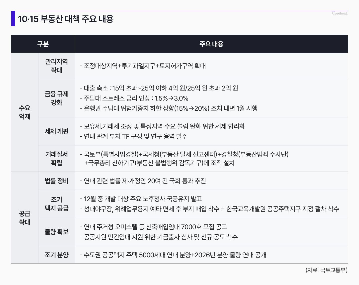 16일 업계에 따르면 10·15대책은 정부가 지난 9월 7일 내놓은 공급 확대 방안(9·7대책)을 발표했음에도 집값 불안이 확산되고 있다는 판단에 따라 마련됐다.