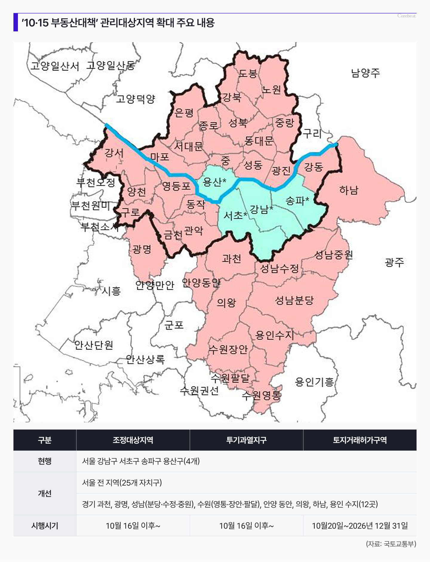 서울 전역과 경기도 12곳이 조정대상지역·투기과열지구·토지거래허가구역으로 지정되면서 실거주 의무, 대출, 세제, 청약 관련 규제가 대폭 강화된다.