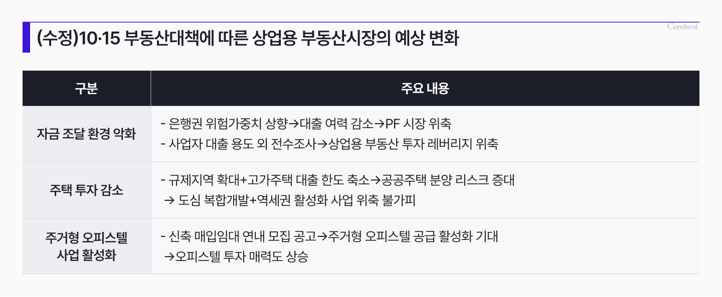 다만 주택 규제가 강화되면서 일부 자금이 오피스텔·생활형 숙박시설 등 대체 수익형 자산으로 이동하는 제한적 ‘풍선효과’가 나타날 수 있다는 분석도 나온다.
