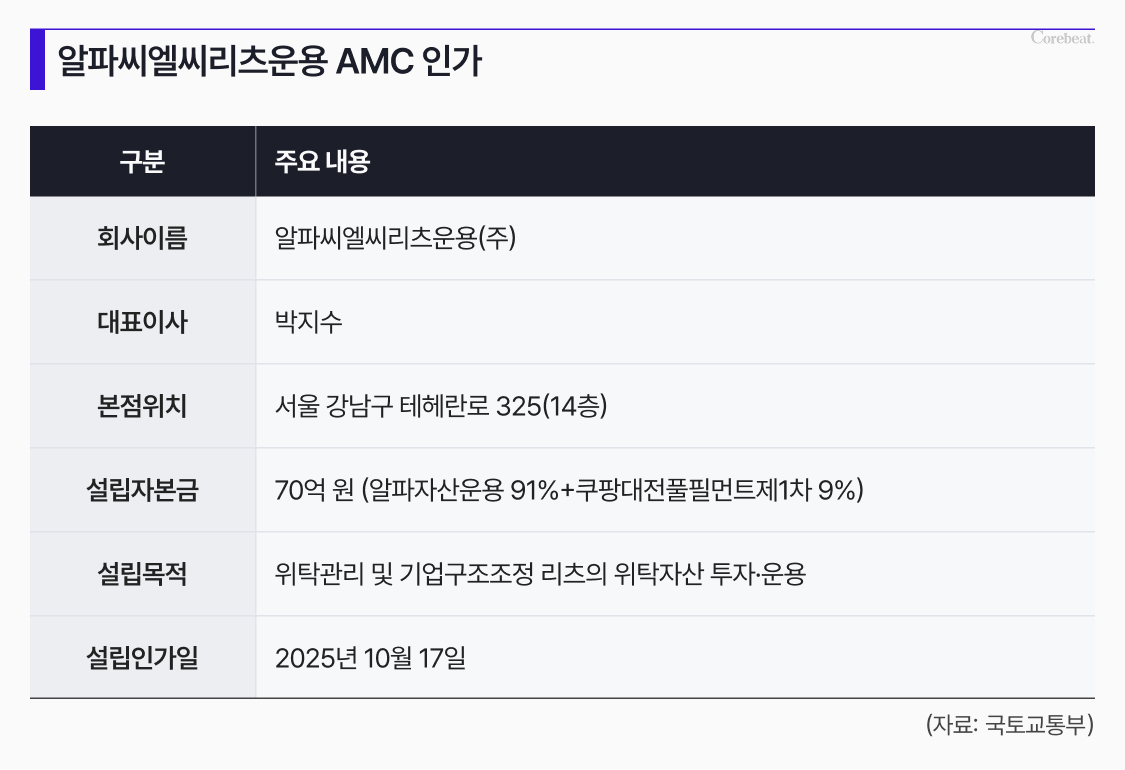 쿠팡 지분 9% 참여 알파씨엘씨리츠운용, 국토부 AMC 인가 획득 대전 풀필먼트센터 1호 리츠 유력... 물류·부동산 결합 새 모델 주목