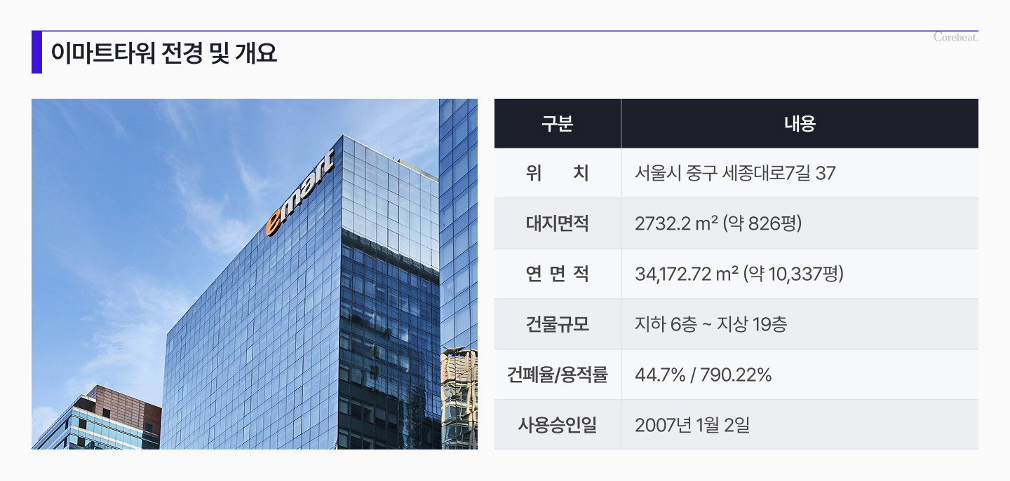 이마트는 현재 10년간의 장기 임차계약을 맺고 이마트타워의 99%(약 1만195평)를 사용하고 있는데, 해당 임차계약은 2033년 2월 만료된다.