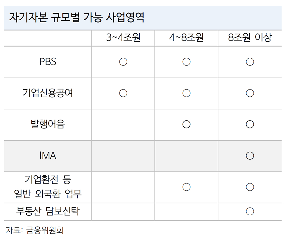 증권사는 발행어음과 IMA를 합쳐 자기자본의 300%까지 자금을 조달할 수 있다. 발행어음이 200%, IMA가 100%다. IMA가 손실이 발생해도 종투사가 원금지급 의무를 부담하는 원금 지급 실적배당 상품인 만큼 이에 따른 리스크를 관리하기 위해서다.