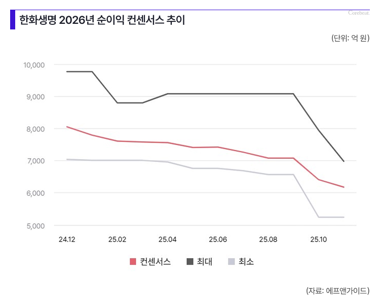 앞서 한화생명은 지난 13일 분기보고서 공시를 통해 당기순이익(별도 기준)이 1361억원이라고 밝혔다. 이는 컨센서스를 12.5% 밑도는 것이다.
