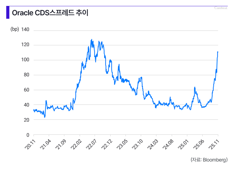 하지만 시장은 추가 자금조달 여력이 충분하지 않다는 의혹의 시선을 거두지 않았다. 오라클의 CDS프리미엄은 치솟았다.