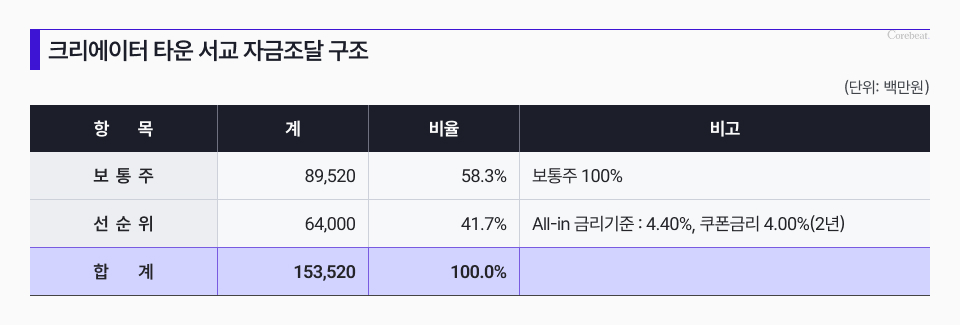 이 가운데 640억원은 선순위 대출로 조달했으며 나머지 약 900억원은 인베스코 코어펀드가 보통주로 투자했다.