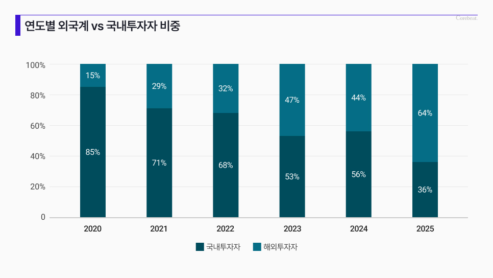 코어비트는 이를 2025년 거래시장의 가장 중요한 특징으로 정리한다. “거래량이 아니라 거래의 성격이 시장을 설명하기 시작했다.”