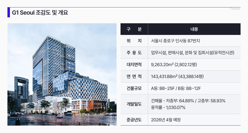 서울 CBD 핵심 입지인 종로-광화문 권역 입지에, 연면적 4만 3388평 규모의 신축이란 점에서 초대형 프라임 오피스로 손색이 없다.