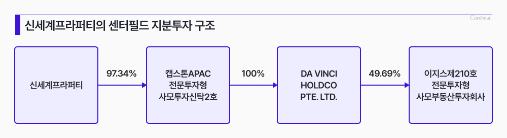 신세계프라퍼티는 2020년 4월 KKR 지분을 캡스톤이 세운 '캡스톤APAC전문투자형사모투자신탁2호'를 통해 사들이면서 캡스톤과 손잡았다. 이후 신세계프라퍼티는 지분율을 끌어올려 현재 49.69%를 확보하고 있다.