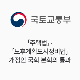국토교통부, 「주택법」 · 「노후계획도시정비법」 개정안 국회 본회의 통과