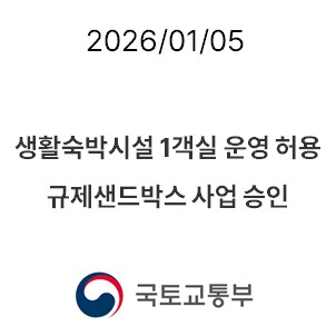 생활숙박시설 1객실 운영 허용 등 규제샌드박스 실증사업 2건 승인