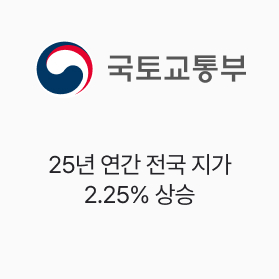 국토부, 25년 연간 전국 지가 2.25% 상승